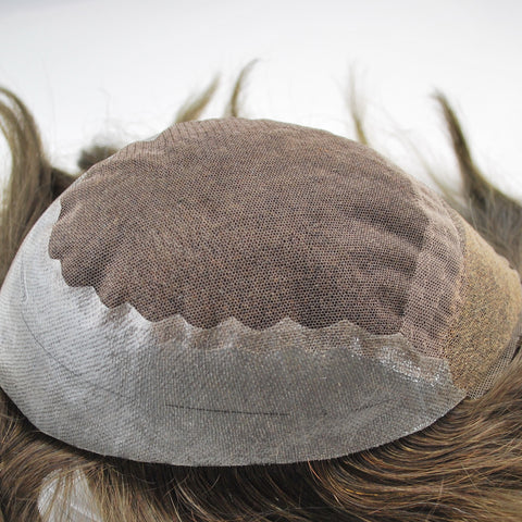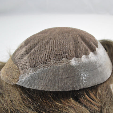 dark brown hairpiece toupee for men French lace with PU back and sides hair system