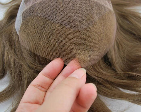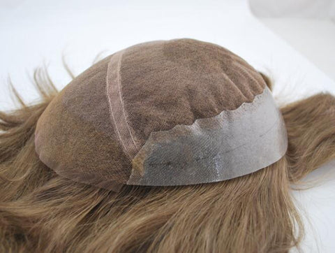 prosthesis for men French lace front with PU back and sides #7 light brown male hairpiece