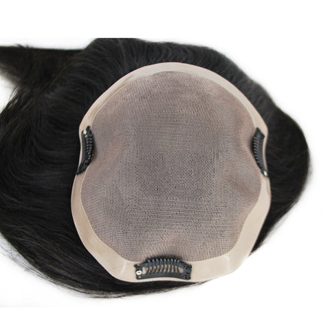 Women Hair Topper 6X6" Human Natural Hairpiece Woman Hair Prosthesis Mono With PU Around Wigs With Clips Straight Hair Replacement
